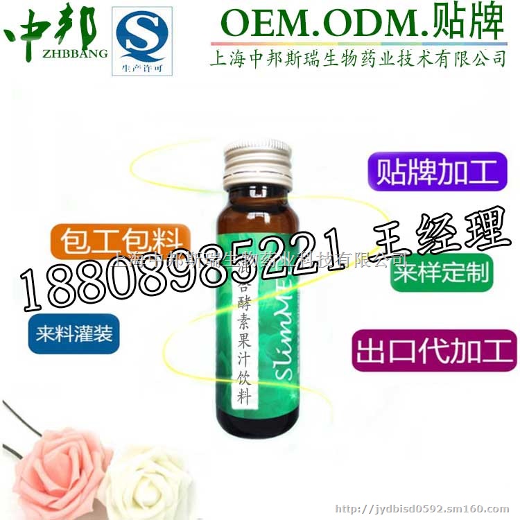 上海中邦斯瑞工厂可为各类酵素饮品OEM/ODM,委托加工备案生产,新产品开发,按样品或要求开产新特产品业务!