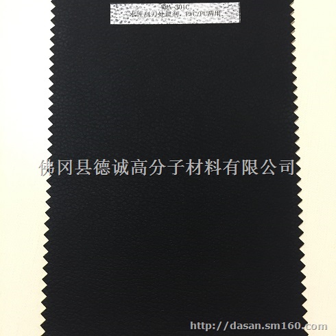 品名:WMA-301C 2. 概要: 水性刮刀处理剂 2. 组成: (1)树脂:水性树脂 (2)溶剂:H?O (3)稀释剂:H?O 3. 规格: (1)固成份:13±1% (2)粘度:2000-2500cps/25℃ (3)外观:乳白色液体 4. 特征:水性雾面刮刀,手感好,雾度强,带轻微蜡感,可用于PU革和PVC革。 5. 使用方式:可用于表处和涂刮,涂布1-3次,于110-150℃下干燥2-3min. 6. 注意事项:(1)如需加色请添加水性体颜料 (2)由于水性产品不容易挥发,所需要烘干时间比油性时间长,确保烘干。 (3)保存期间:两个月。 特别建议:在批量使用德诚(DASAN)处理剂产品之前,敬请索取样品进行技术测试及量产,并严格控制工艺及配方,以确保达到最佳效果,避免不必要的损失。