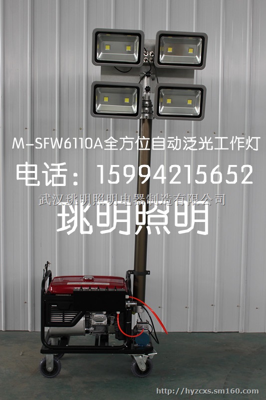 本公司为了满足部队、铁路、电力、公安等企事业单位以及各种大型施工作业、矿山作业、维护抢修、事故处理和抢险救灾等工作现场对大面积、高亮度照明的需要,特研制开发生产了M-SFW6130全方位拖车照明灯塔,可在各种恶劣务件下工正常工作。
