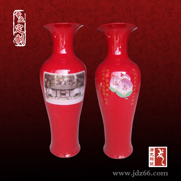 景德镇唐龙陶瓷有限公司:作为一家植根与千年瓷都景德镇的陶瓷企业,我公司生产加工的礼品工艺陶瓷大花瓶产品全部经过1300度以上高温烧制而成,永不褪色变色。是温馨相送、友谊联络、喜庆贺礼、工商馈赠、师生情谊、敬意表达、励志名言及节日纪念等传达非凡感受的礼物。选择唐龙,品质的保证;欢迎各界有识之士光临我公司参观指导!(出厂价供货,价格最优!)