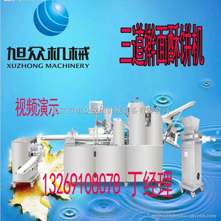 北京旭众酥饼机,由三道擀面和加馅主机、捏花成型机三台配套单机组成,与一般的酥饼机相比,该机器主机整合了擀面机与加馅机,合整个主机更方便流畅。整个机组同食品接触部分均采用优质不锈钢,确保生产运行平稳、可靠、卫生。