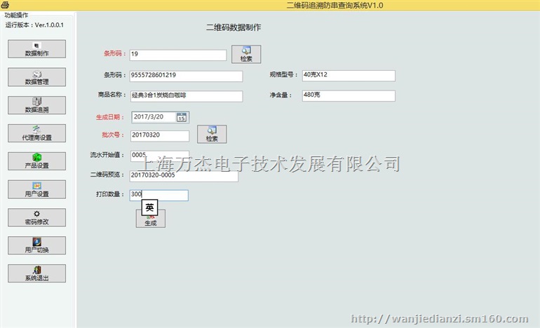 商品二维码查询系统由上海万杰电子定制开发,本系统可提供测试版本进行测试,演示系统及简述如:
