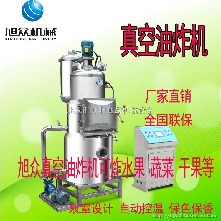 双室真空油炸机是“旭众” 公司新研发的第三代真空油炸设备,也是目前全球新型、节能、安全、实用的油炸设备;第一代单室真空油炸机,第二代水油混合真空油炸机,第三代双室真空油炸机。