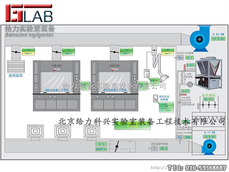 气流控制系统有三个部分组成:智能控制系统、管道风机系统、通风设备系列。智能控制系统:在任何一个实验室中,尤其是化学实验室,通风柜是***重要的配制,好的通风柜配套以好的气流控制系统,可以让本来危险的实验操作变得安全、顺利。智能控制系统可以根据不同的需求分为以下两种控制方式: 变频器控制系统?主要特点: 1.可减少投资资金; 2.故障系数低,但维修较麻烦; 3.节约能源; 技术说明: 这种控制系统可以支持多台通风柜共用一台风机,由中央控制系统来调节风机的转速达到调节总抽风量的目的,适用于实验室中通风柜数量不多于 4 台的实验室。 变风量控制系统 (面风速控制系统、房间压差控制系统)主要特点: 1.可以根据通风柜拉门的高度自动调节抽风量,保证表面风速衡定; 2.安装后,可以节省能源; 3.保证换气频率,***大限度保证人员安全; 技术说明: 这种通风系统组成复杂,每台通风柜的配制有感应装置、中央处理系统和执行装置,当风柜拉门改变高度时,中央处理系统接受到来自感应装置的信号,则控制执行装置完成动作达到改变抽风量的目的。适用于大型研发中心或实验室通风柜数量较多的实验室,可以在后期使用过程中,有效节省能源,降低运营费用。