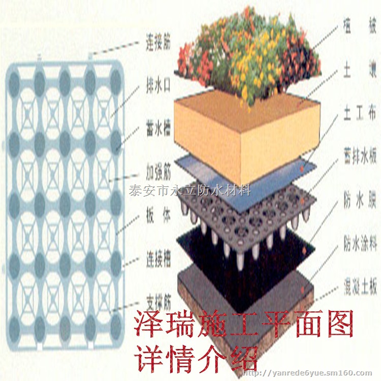 板是用塑料注塑而成。导水板是硬塑料,高强承托力的建筑技术绿化景观技术相衔接结构,板式材料。138%538%62645冯振青经理双面一致,模