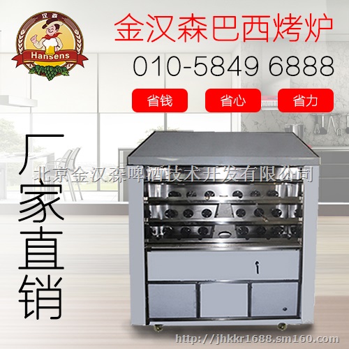 金汉森的巴西烧烤炉设备,质量过硬,性能优越,烤出的食物味道极佳,食品色泽鲜亮,机器采用喷涂外壳,标准炉板,加粗烤架特点:豪华不锈钢炉体(豪华喷涂板炉体),独立四头电子脉冲点火节能分量控制,四条独立耐高温水晶红外线加热。