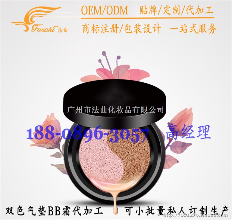 双色气垫BB霜贴牌加工,双色气垫BB研发生产厂,气垫粉凝BB霜代加工,花式气垫CC霜OEM,粉底液代工合作企业。广州法曲化妆品欢迎您来电咨询:18808963057(同微信) 高川 产品经理 QQ:908999690