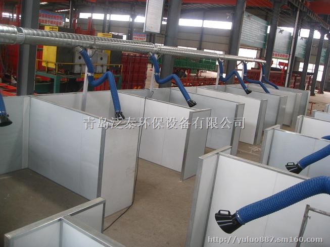 2、中央烟尘净化系统通过主管路向一侧延伸,整个管道可按需要用T型、I型、变径管、90度弯管连接,并设安全固定装置,在每个工位上方安装一个所需长度的吸气臂(或吸气罩)这样才是一个吸收、过滤、净化的完整的一套中央烟尘净化系统。