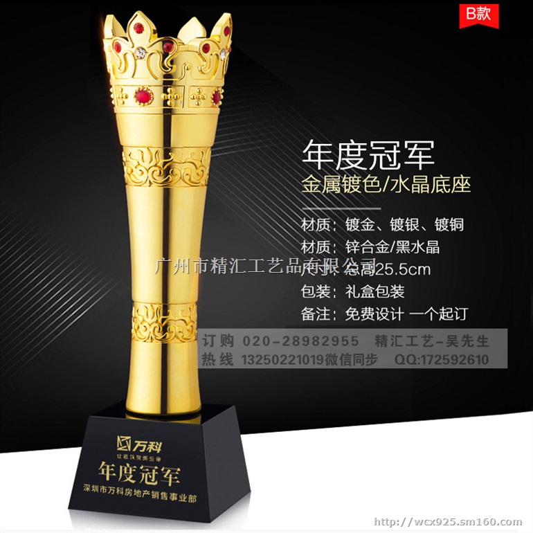本公司主要生产:金属制品,合金奖杯,水晶奖杯,实木奖杯,奥斯卡奖杯小金人奖杯,企业形象奖杯、锡制奖牌 纯锡奖盘 合金盘 工艺品,高档商务礼品,纪念品,奖杯,奖牌,奖章,纪念币,高档胸牌,纪念章,徽章盾牌等相关产品。精汇工艺所有产品都采用高档材料,从原料到生产及出货过程经过严格的检测,确保为客户提供了最有保证、最放心的优质产品!凭借在礼品行业丰富的经验,我们的产品不但在式样上标新立异,在质量上更是一丝不苟、精益求精,在价格上更是质优价廉,有着良好的售后服务。作为一家专业设计、生产、创新销售为一体的专业性企业。公司全体员工真诚的希望用我们的礼品和创意为您的企业和家庭开拓一片广阔的市场和美好的未来。以热情,周到,真实,诚信的服务理念,争做一流服务,创新一流精品,让您满意是我们的目标。
