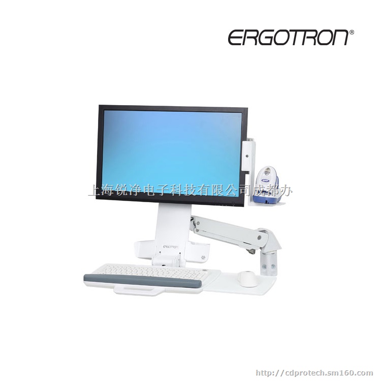 *Ergotron爱格升墙式显示器带台面支架45-266-026提供条码扫描仪固定座,方便取用手持式扫描仪
