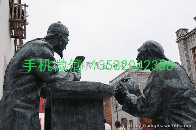 环球雕塑主营产品:当铺人物雕塑 古代人物铜雕塑 黄铜仿青铜雕塑 景观铜雕塑 城市铜雕塑