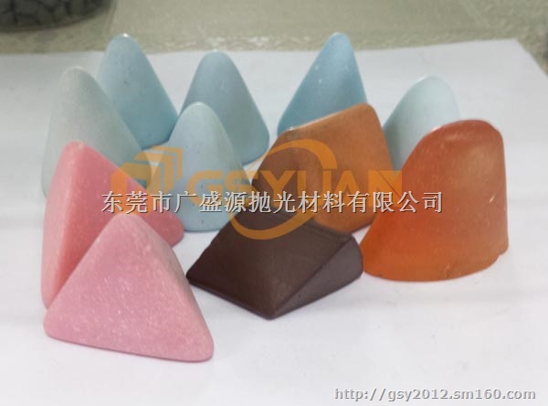 适应物料:树脂研磨石用于铝合金、锌合金、铜、树脂(塑料)等材质较软的产品去批锋、毛边、倒角、去氧化皮、电镀前细磨,常用于家私五金(如拉手、锁具等)及箱包五金(如皮带扣、鞋扣等)