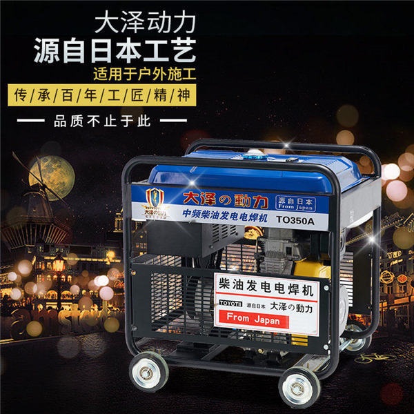 氩弧焊300A柴油发电电焊机三用机 是一家具有先进发电电焊机技术的公司,为各地的客户设计、生产市场化的发电机和相关动力产品,发电电焊一体机、数码发电机、燃气发电机、190A发电电焊两用机,TOTO190A、小型发电机,发电机、水泵及水泵等,并为这些产品提供完善的售后服务,让客户享受产品的品质。 发电电焊机又叫发电电焊两用机,可以作为发电机用,同时也可以作为一个电焊机用。优点:发电电焊一体、重量轻、移动方便。大泽动力率先引进新技术,将发电机和电焊机结合,具有动力启动快捷、运转平稳、震动小、油耗省、体积小、结构紧凑、点火稳定可靠等优点!