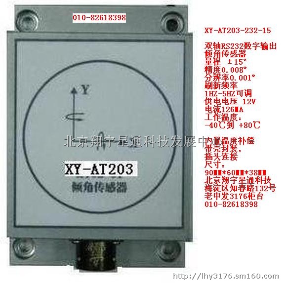 型号 量程 接口 输出格式 输入电压 XY-AT203-232-15 15度 RS232 HEX(16进制)格式 9-15V