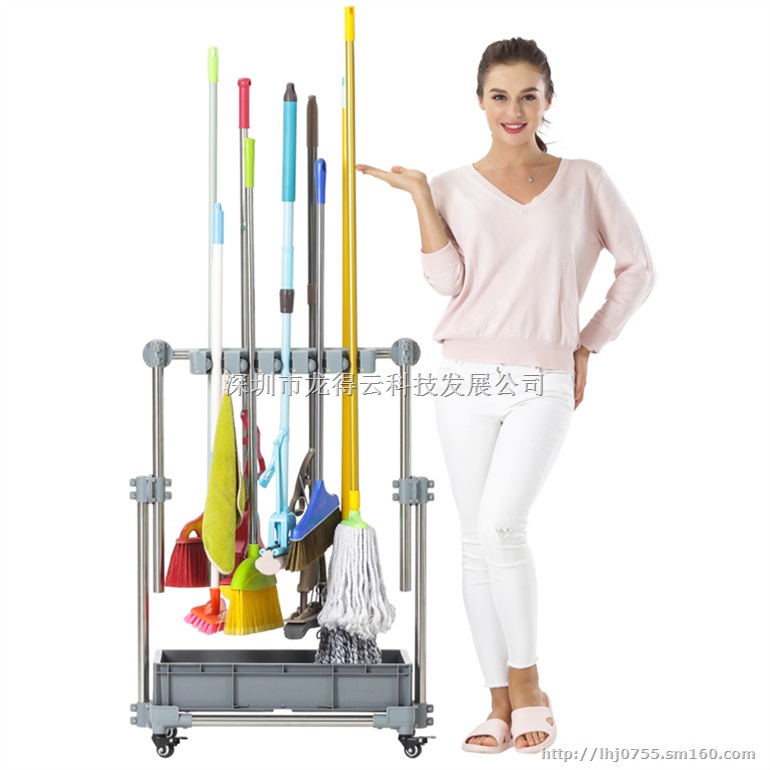B、落地式带接水盘拖把架扫把架: