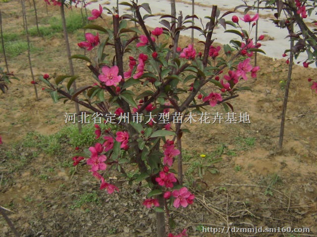 河北定州大辛庄镇是华北地区的北美海棠种植基地,我基地内有千余亩北美海棠种植,品种包括绚丽海棠,亚当海棠,珠穆朗玛海棠,王族海棠,高原之火海棠,皇家雨点海棠,大叶北美海棠,白兰地北美海棠,凯尔斯北美海棠,印第安魔力北美海棠,红丽北美海棠等。可为包括园林绿化公司,苗木种植户及项目施工单位提供北美海棠小苗,芽接苗,工程苗等。