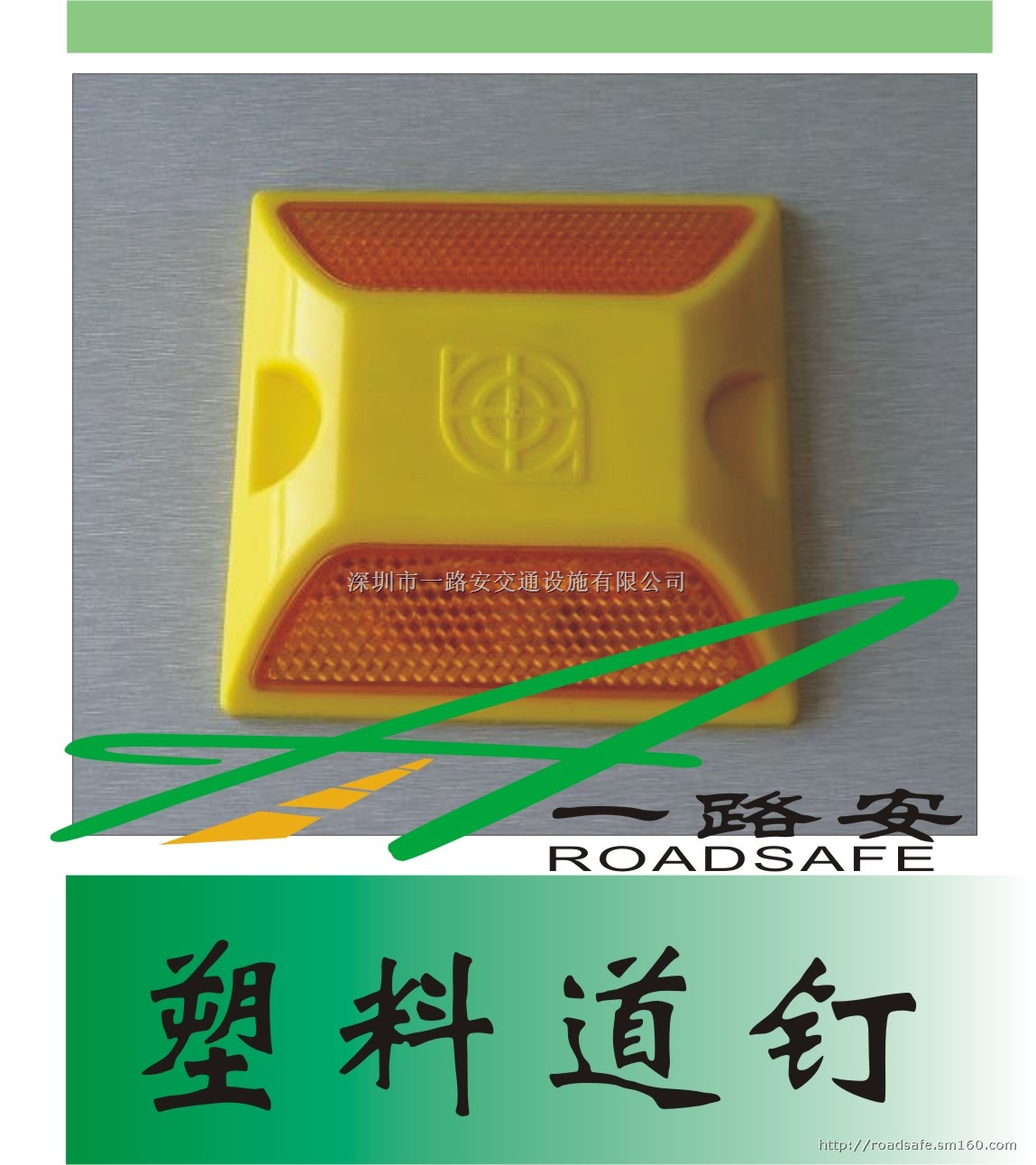 防水, 耐磨., 加还氧树脂胶的双重固定, 使产品抗冲击性能大大提升.由于具有凸起的道钉体,从而可以使道钉在雨中不会受雨水影响,仍具有和平时一样的反光特性,因此增加了驾驶的安全性。同时,这种凸起型道钉也可以使驾驶员在改换车道时感到轻微振动,以起到提醒和警示的作用。道钉是采用计算机辅助设计,使其道钉体具有很强的抗冲击能力。同时道钉体本身也采用高强度材料制成,从而大大减少了道钉损坏和丢失的可能性。道钉体与反光片的颜色一致,这样使道钉在白天也有很好的视觉效果。其反光片与道钉体的结合采用超声波焊接技术,粘结十分牢固,杜绝了反光片脱落的问题。