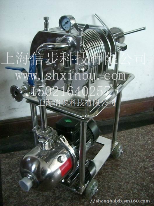 实验室用小型板框压滤机一般是用于实验室对物料的过滤,量比较小,过滤粘度比较小,和水差不多但可以连续使用,用泵可以把物料输入到过滤器里面,一般一次性使用10张滤膜或者滤布,清洗也比较方便,下面有接液盘带小推车可以移动使用方便。