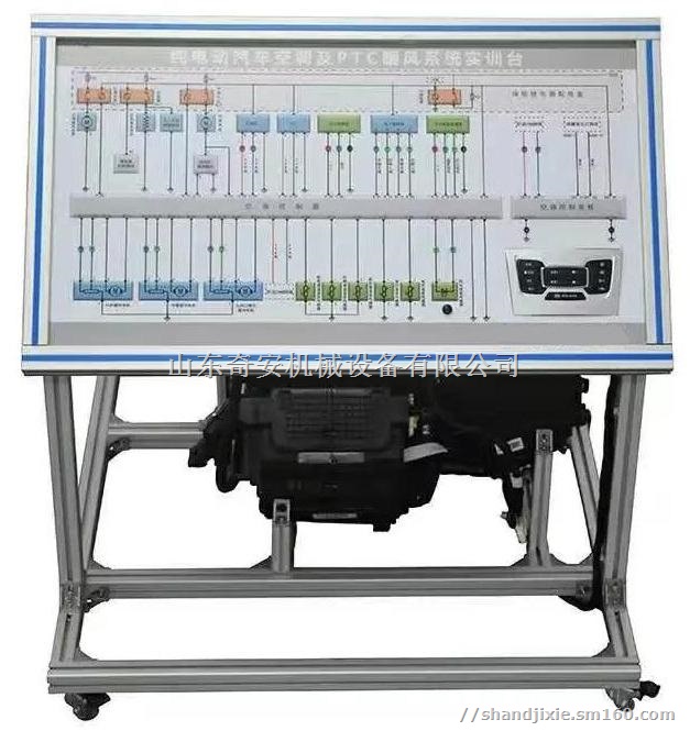 ? 本实训台使用量产新能源汽车电动空调系统全新原车配件作为基础部件,自行开发了电源系统、控制系统、总线系统及其它附件确保电动空调系统可正常运行。