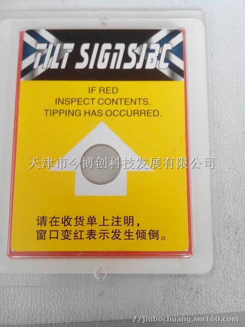 天津市今博创科技发展有限公司供应防倾斜标签可以很简单地显示出货物有否曾经在运输或仓存中被倾斜、横放或倒置,并时刻监控货物的存放是否合乎存放要求,由此有效地为你预防及减低货物在运输过程中损坏的风险。倾倒显示标签是一种真实的单项计录器,显示产品向左倾斜的真实角度;证明这个货物完全颠倒过;可监视控制全程运输,是一种不可改变的全方位的倾斜监控贴纸。如有意外倾倒事故,倾倒显示器以变红色的形式来反馈倾倒事故信息,货物从直立角度倾斜超过80°;圆形显示窗口有绿色变为红色后;记录不会自行复原位,将作为责任划分依据。 选择防倾倒标识产品时,偏好与成本是考虑要点。根据产品所要求的倾斜角度选用并可选择订制颜色及公司LOGO。