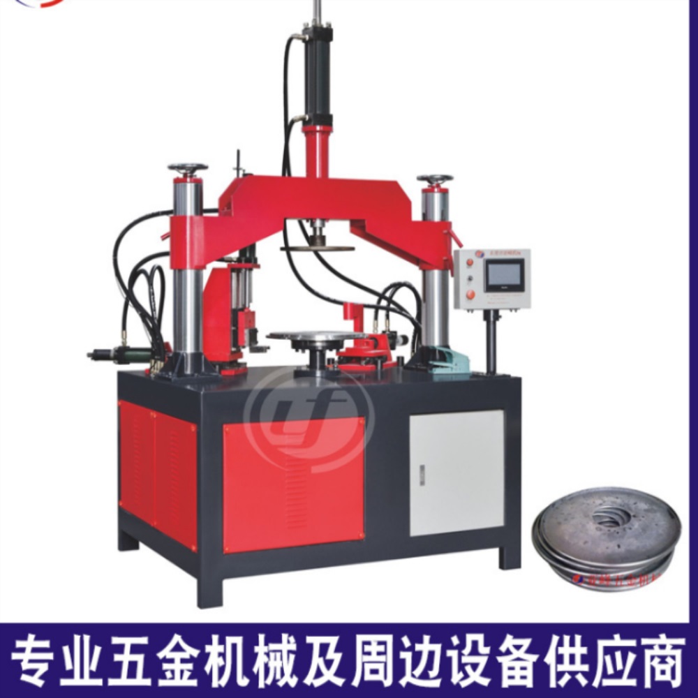 主要用于大型拉伸件后的切边、卷边工作。更厚可卷3mm以下,更大直径1100mm以下,更大可订做,如烧烤盘等。适用于不锈钢、铁、铜、铝等圆形桶工件卷内边、外边。集切、卷、压于一体。速度快,质量好、效率好,弧度光滑,技术领先。