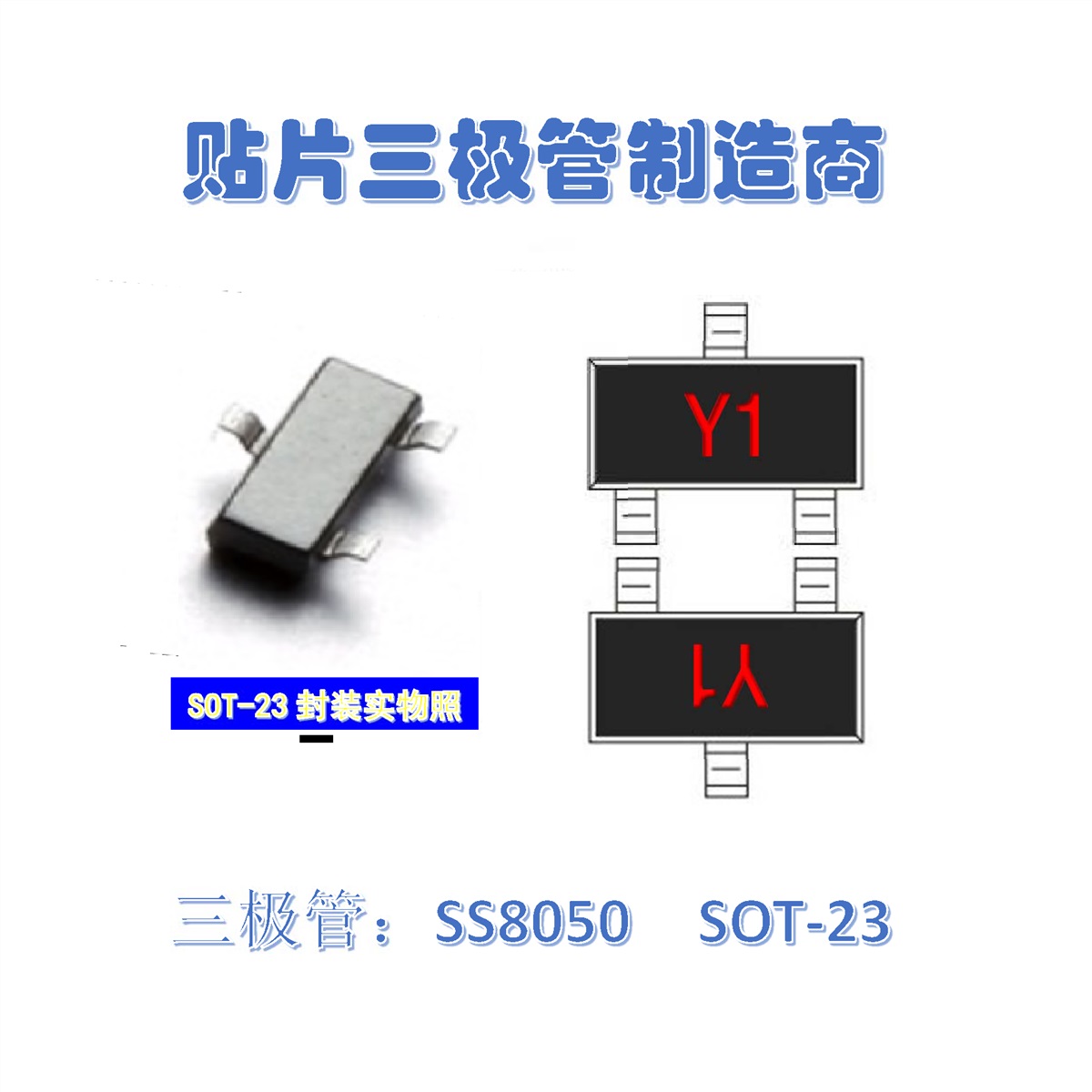 贴片三极管SS8050 印记Y1 封装:SOT-23;是一款非常常见的一款放大三极管,主要起电流放大作用。
