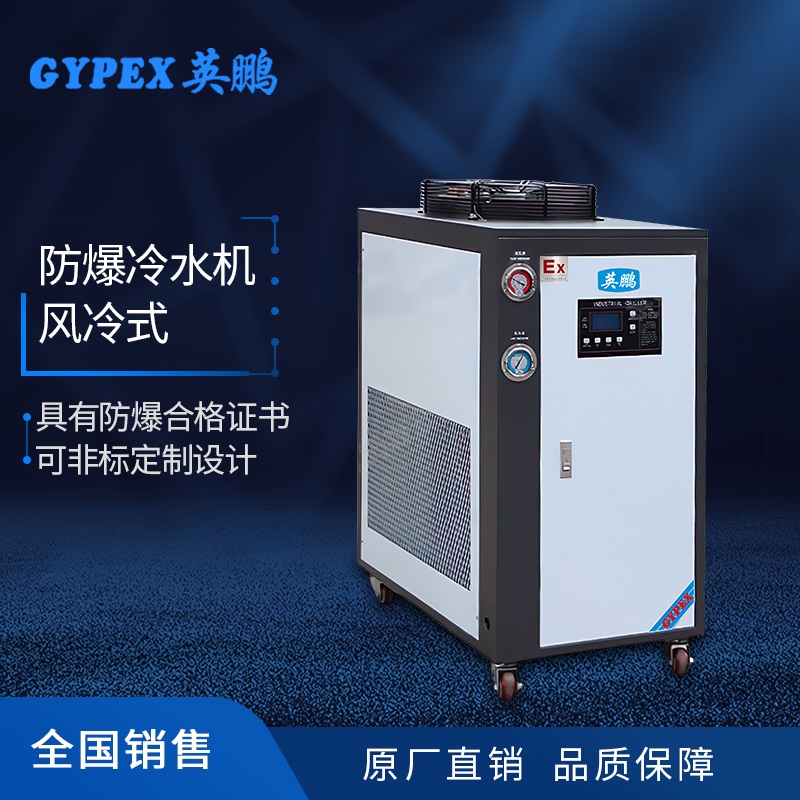 英鹏防爆冷水机将具有制冷制热和自动除霜功能,压缩机、风机等都经过特殊的防爆处理,防爆类型为整机防爆,压力保护等措施,在结构上采用隔爆型、本安型、浇封型等复合防爆技术,控制端全由本安型控制,不产生任何电火花,使用方便安全可靠