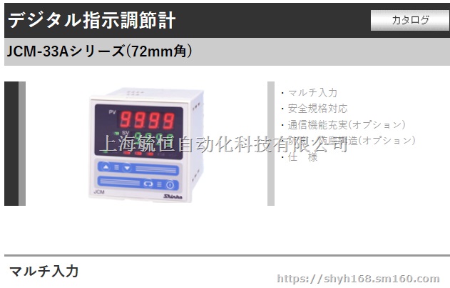 ●JC□-33A智能数显调节仪是日本Shinko公司研制的实用型高性能价格比智能调节仪,仪表的精度等级为0.3级,采样周期250ms。具有自由输入,PID自整定,双回路输出,双设定值,多种报警,手动输出等功能。