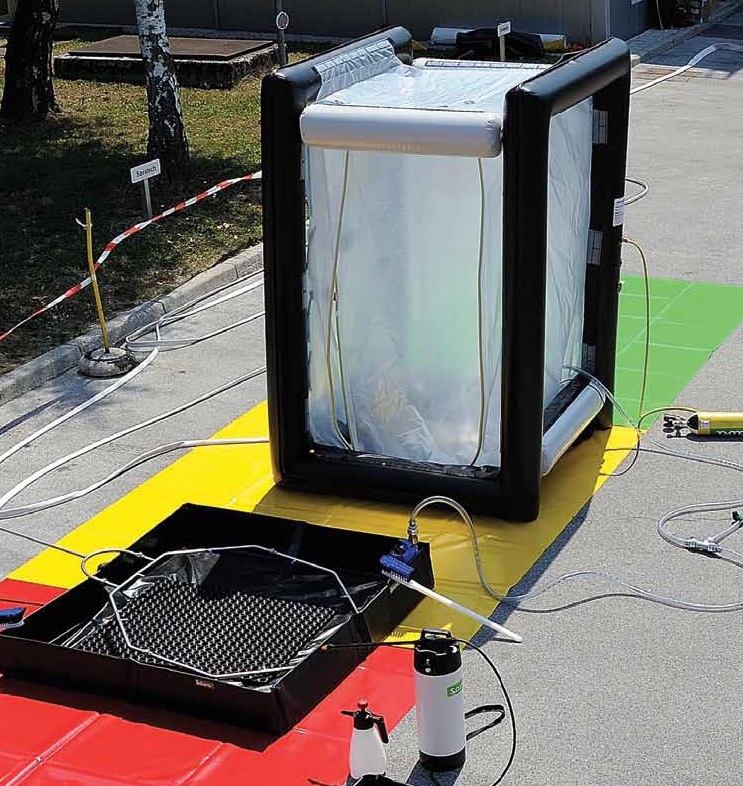 该套系统用于应急救援场所、洗消喷淋用。可独立使用,也可与其他装备配套使用,大规模清洗或用作简单的个人卫生淋浴。