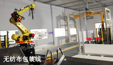 大连佳林自主研发的全自动悬臂在线式缠绕包装机可以实现大小规格产品的不同打包需求,包括:单独打拉伸膜、拉伸膜与珍珠棉护角同时使用,总体使用拉伸膜,上下边缘使用珍珠棉护角,针对多品种小规格的布卷产品,采用机器人码垛,独特的抓手设计,不仅能高效完成码垛作业,还能在抓布卷的同时抓取纸板保护布卷产品,整线通过独特的翻转设计可满足单盘超大规格产品的打包作业。