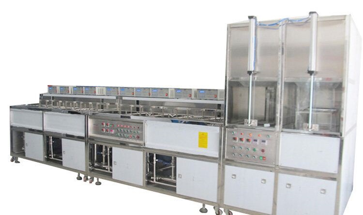 VGT-1307FH为光学窗口片超声波清洗机,设备共有13个功能槽,配置有浸泡系统、循环过滤系统、自动恒温系统、抛动系统、超声波清洗系统、慢拉脱水系统、热风烘干系统、密闭气缸系统、抽风装置等。设备采用环保型水溶剂洗涤、纯水漂洗,为环保型清洗剂。
