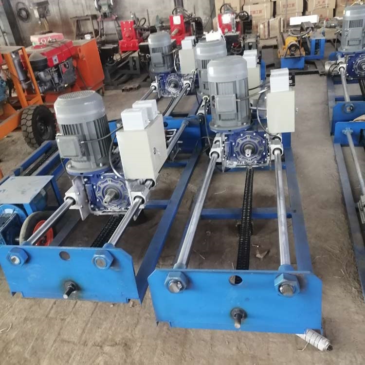 小型水钻的操作流程就是以上的那些,接下来说下自走式水钻顶管机,自走式水钻顶管机也是需要注水操作的,然后还可以做成了螺旋钻机,配合螺旋钻杆使用,也就是不用加水操作。先说自走式注水式钻杆钻机,钻机的整机尺寸为190X50X40公分,组成部分为一个卧式三相电4千瓦电机,机器的后半部分还有一个电机,这个电机的是负责前进后退的,架子采用的是加固的滑杠,左右各有一根1.9米的滑杠,滑车就固定在滑杠上边,滑车的两边各有两个滑块,滑块也是加固的。操作的流程也是把工作坑挖出来,需要实际预埋管线多深就挖多深的坑,然后把机器放到工作坑里边,接电、接水,打眼之前先试机一下,确保机器正常转动出水量正常,这种卧式三相电自走水钻,接电方式需要注意下,主机采用的是三相电四千瓦的,前进后退的电机是两相电的。自走式卧式电机水钻主机需要接工业用电,也就是说380V的,前进后退的电机需要接一个两相电220V的,千万可别搞错了。