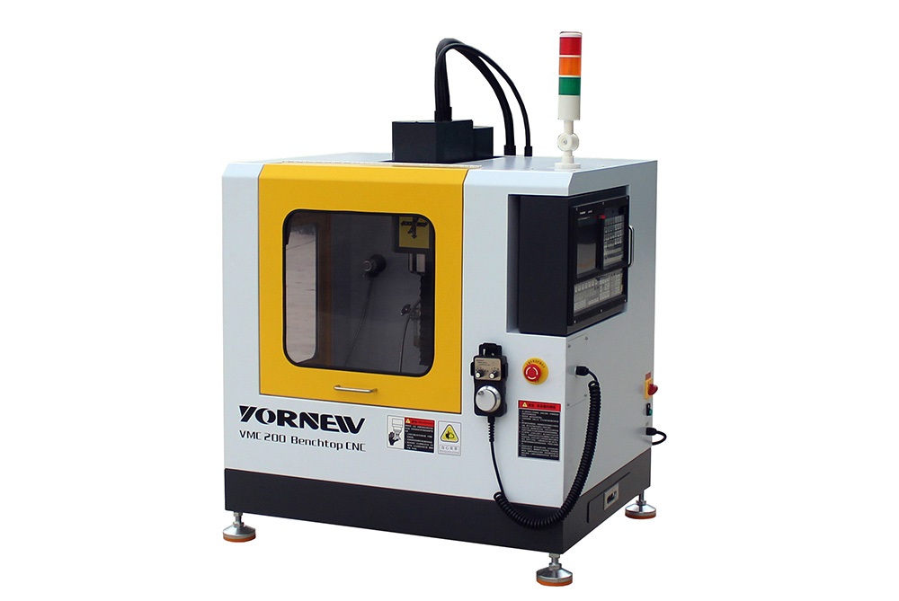 VMC200小型加工中心占地小、重量轻,搬动方便;可用于智能制造生产线教学展示项目及FMS柔性制造工业机器人上下料加工单元,机床联网等;高速主轴:加工速度高达24000rpm,实现高光洁度和高精度雕刻、钻孔加工,主要加工黄铜、铝合金、PVC塑料等材料;VMC200小型加工中心设计有自动门及32个路IO端口便于与工业机器人通讯,支持上位机通过网口读取系统状态数据,如转速、位置、坐标及远程传输文件功能等。采用全封闭安全设计结构,配置工业数控面板数控系统;4工位换刀系统,使用气压0.6Mpa,主轴采用高速精密主轴单元。