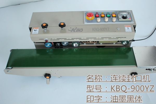 1、KBQ-900F:这款封口机我们定位为普通型连续式封口机,主要针对一些包装食品袋封口打包,例如槟榔袋,瓜子袋,小食品袋等等封个口打个包使用,还有就是需要钢印生产日期年月日这些信息可以使用这款900F连续式封口机印字使用,但是是钢印,也就是加热烙上去的。