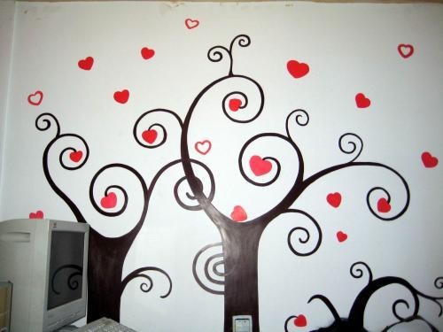没有美术功底的人,要在墙上画好底稿,用笔轻轻勾出草稿轮廓,满意后方可上色,否则不容易修改。