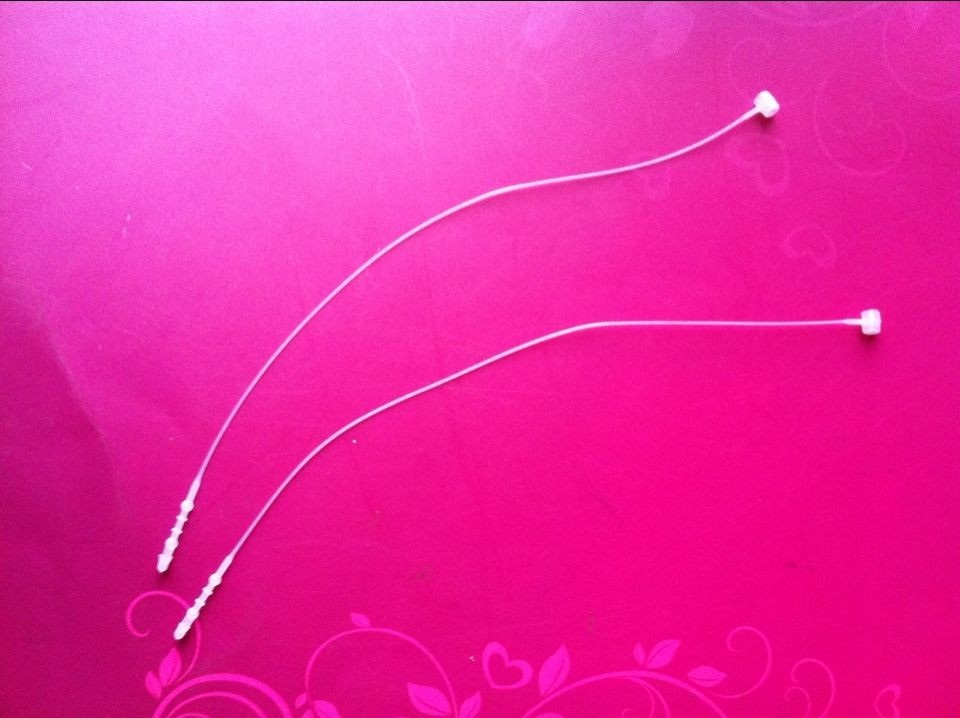 手穿针又名子母扣、手穿胶针、吊环、套丝等,是PP料和尼龙料经塑胶模具注塑而成的一种针,结构分为头和尾,亦称公和母,头分为三叉形与圆形,尾(即有孔的一端)分为圆柱形与圆台形。广泛应用于服装、鞋业、手袋、礼品等行业。