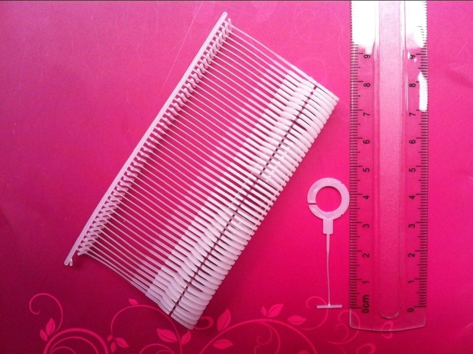 胶针:也叫排针或排扣,是服装、内衣、手袋、鞋类、帽子专用产品。规格特幼尼龙胶针5、7、9、11、15、25、35;标准PP胶针:15、25、35、50、65、75、100、125、175、230。手穿针又名子母扣、手穿胶针、吊环、套丝等,是PP料和尼龙料经塑胶模具注塑而成的一种针,结构分为头和尾,亦称公和母,头分为三叉形与圆形,尾(即有孔的一端)分为圆柱形与圆台形。广泛应用于服装、鞋业、手袋、礼品等行业。