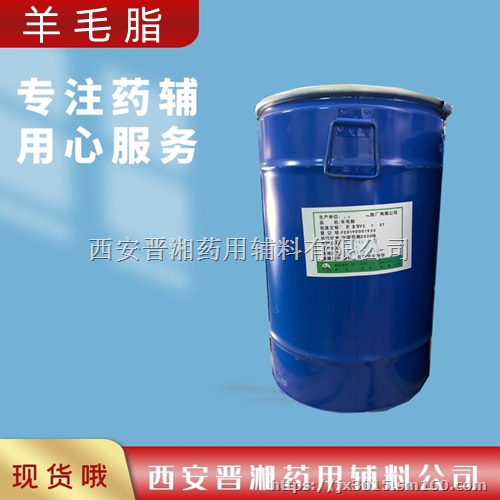 本品系采用羊毛经加工精制而得。  【性状】本品为淡黄色至棕黄色的蜡状物;有黏性而滑腻;臭微弱而特异。  本品在三氯甲烷或*中易溶,在热乙醇中溶解,在乙醇中极微溶解,在水中不溶;但能与约2倍量的水均匀混合。  熔点  本品的熔点(通则0612第二法)为36~42℃。  酸值  本品的酸值(通则0713)应不大于1.5。  碘值  本品的碘值(通则0713)应为18~35(测定时在暗处放置时间为4小时)。  皂化值  本品的皂化值(通则0713)应为92~106(测定时加热回流时间为2小时)。  【鉴别】取本品0.5g,加三氯甲烷5ml溶解后,加醋酐1ml与硫酸2滴,即显深绿色。  【检查】酸碱度  取本品10g,加水50ml,置水浴上加热熔融,不断搅拌,放冷,除去脂肪,溶液应澄清,取10ml,加酚酞指示液1滴,不得显红色;另取10ml,加甲基红指示液1滴,不得显红色。  氯化物  取本品0.20g,置锥形瓶中,加乙醇27ml,加热回流数分钟,放冷,加硝酸0.5ml,滤过,滤液中加硝酸银的乙醇溶液(1→50)5滴,如发生浑浊,与对照液[取乙醇20ml,加标准氯化钠溶液7.0ml、硝酸0.5ml与硝酸银的乙醇溶液(1→50)5滴制成]比较,不得更浓(0.035%)。  易氧化物  取上述酸碱度项下遗留的溶液10ml,加高锰酸钾滴定液(0.02mol/L)1滴,5分钟内红色不得完全消失。  乙醇中不溶物  取本品0.50g,加无水乙醇40ml,煮沸,溶液应澄清或显极微的浑浊。  干燥失重  取本品,在105℃干燥至恒重,时加搅拌,减失重量不得过0.5%(通则0831)。  炽灼残渣  不得过0.15%(通则0841)。  【类别】药用辅料,软膏基质和乳化剂等。  【贮藏】密封,在阴凉处保存。