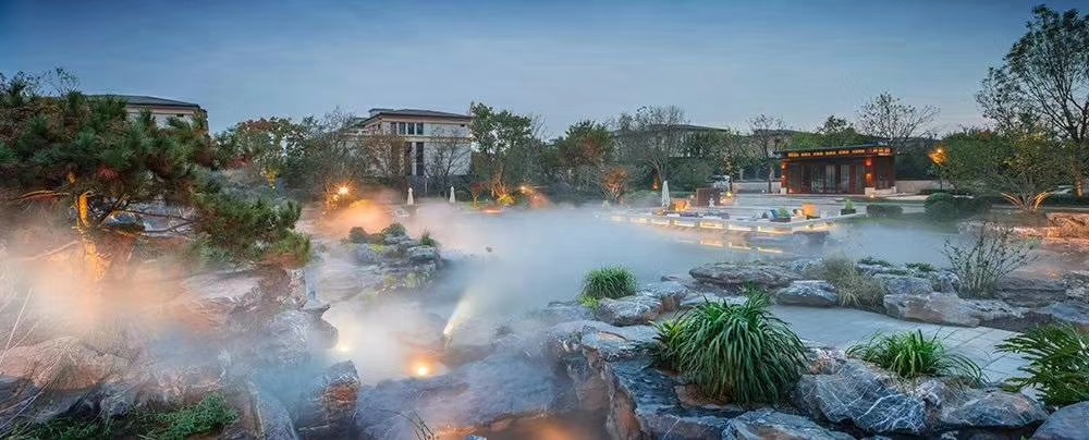 喷雾水景人造雾可以装点衬托其它景观。静止的景物配以活动的水景,可达到静动结合,使之更生动活泼、丰富多彩;配以静止的水景,可使景物更加宁静平稳,映衬互补。
