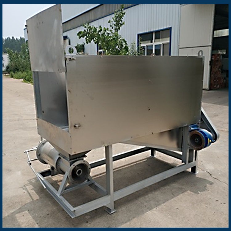 5.食品厂使用螺旋堆垛机来减少污泥处理时间,螺旋堆垛机的工作原理非常简单,一台设备集浓缩和脱水于一体,前端是加厚部分,当螺杆轴旋转时,它驱动周边的多个固定环和移动环相对移,在重力作用下,水从相对移动的环中过滤出来,以实现更快的浓缩,从而消除用户在建6.造污泥浓缩池方面的投资,降低成本,减少占地面积,设备的后端是脱水段,稠化的污泥随着螺杆轴的旋转不断向前移动,螺杆轴的轴向距离变小,螺杆轴与环件之间的体积也变小,压力不断增加,从而使污泥饼的固体含量不断增加,在螺杆轴的不断推动下,滤液不断分离。