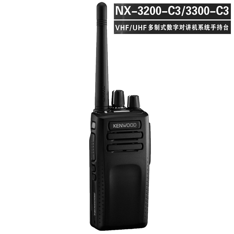 KENWOOD 建伍NX-3200-C3/3300-C3、VHF/UHF多制式建伍数字对讲机系统手持台,外形简洁,坚固耐用,操作易于掌握。内置GPS和蓝牙功能,可实现GPS定位、蓝牙无线耳机、蓝牙数据传输等丰富多彩的应用功能。两种数字方式供选择使用:初始状态采用NXDN数字协议,是超窄带FDMA方式;通过采用DMR选件,无需增加或变更任何硬件即可支持DMR数字协议,变为2 时隙TDMA方式。
