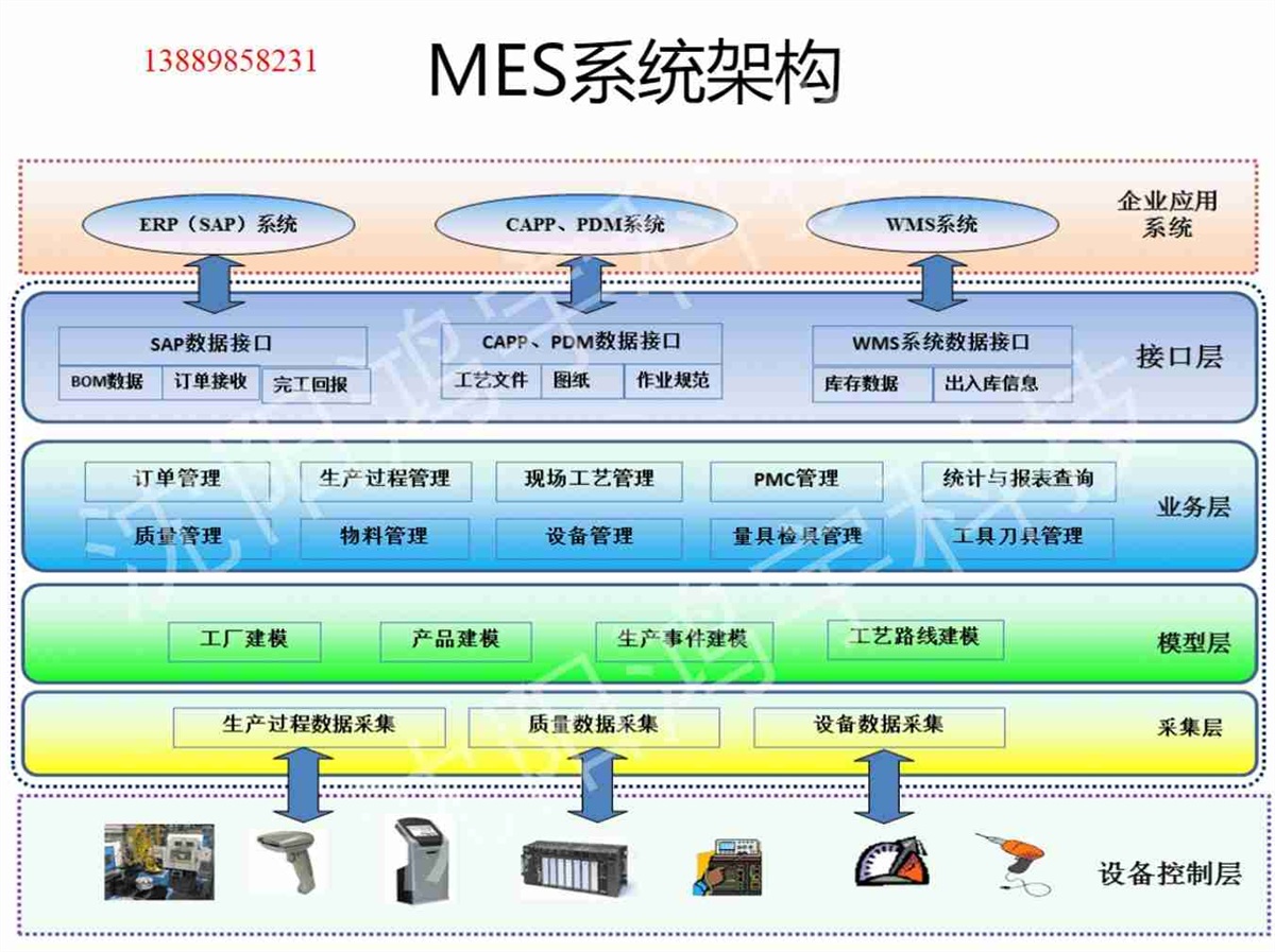 MES 系统填补上层生产计划与底层工业控制之间的空白,以解决车间生产任务的执行问题,通过物流、设备、信息等实时监测与协调优化控制,达到快速响应制造及降低资源消耗的目标为其它信息系统 ( 如 ERP 等)的实施提供支撑。