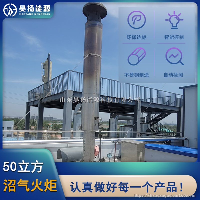 内燃式沼气火炬为304不锈钢材质制作,其表面进行防腐处理,具有耐腐蚀、寿命长、外形美观等特点。火炬表面设有观察口,可随时监测火炬运行状态。沼气燃烧过程在火炬筒体内部完成,整个过程燃烧充分,顶部无火焰及黑烟冒出。沼气火炬采用点火电极点火,点火电极采用特殊材料制作,大大提高点火成功率。当沼气火炬系统点火不成功时,火炬自动内部吹扫。当管道沼气压力达到自动点火压力时,控制系统开启自动点火程序;