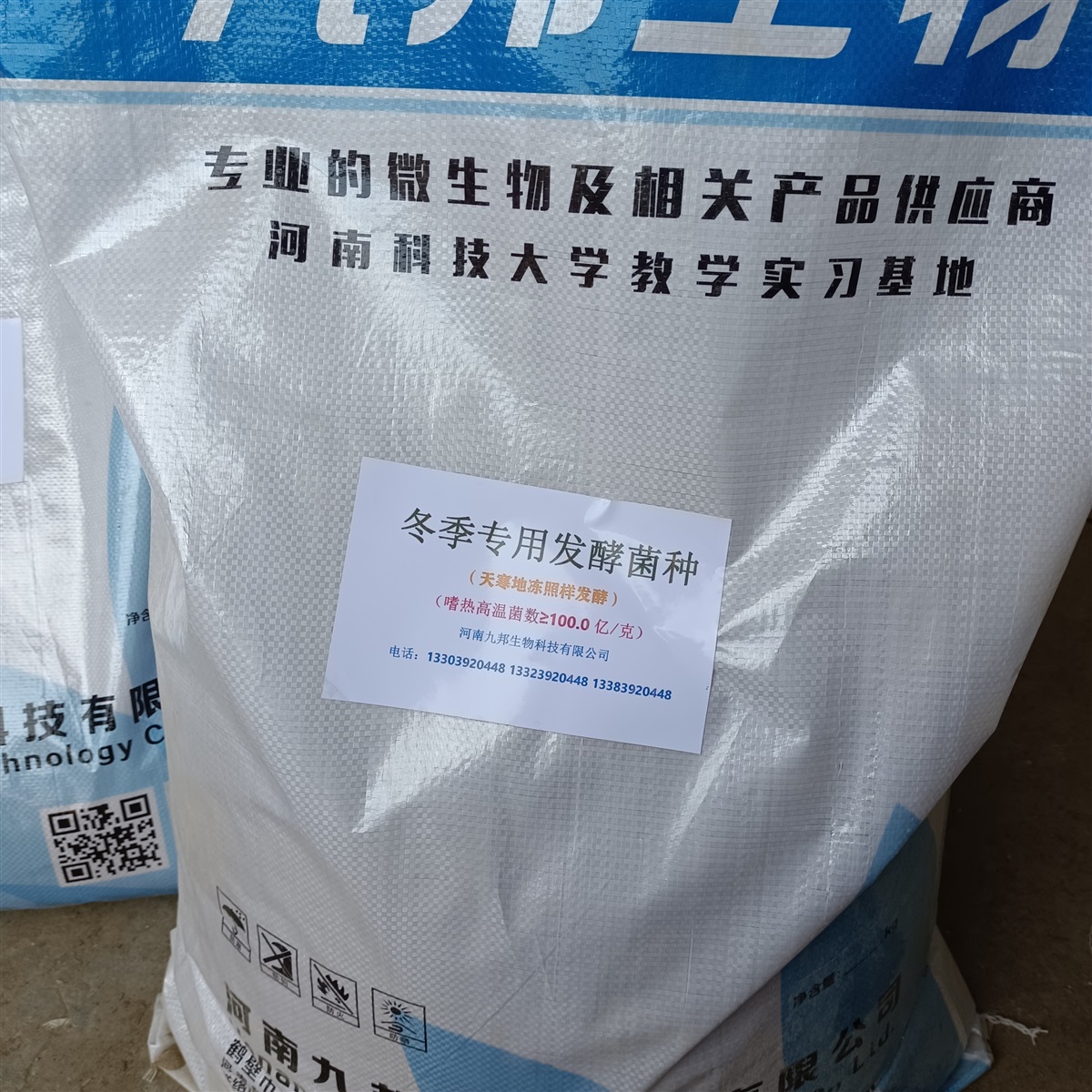 九邦专用发酵高温菌是我公司技术专门为特殊物料升温困难研制的一款发酵生物菌种。本产品由具有强烈分解、腐熟、转化功能的嗜热性侧孢霉、烟曲霉、放线菌、嗜热脂肪芽孢杆菌等高温嗜热菌种中的多种菌株及相关酶类复配而制成。其作用机理是:通过微生物菌的生长、繁殖产生热量,促使生化污泥、畜禽粪便、糟渣类物质等有机物料在低温天气下也能充分转化,将碳、氮、磷、钾、硫等分解矿化,将大分子转化为作物容易利用的小分子或者腐殖质,同时达到升温、除臭、降低物料水分、消除病原微生物、虫卵、杂草种子和增加速效养分的效果。