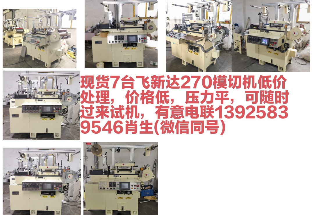 现货7台飞新达270电脑平压模切机低价转让,成色新,机况好,价格便宜,有意大胆询价,欢迎随时前来试机。另有坤轮270、威士达300.350等二手模切机现货多台。