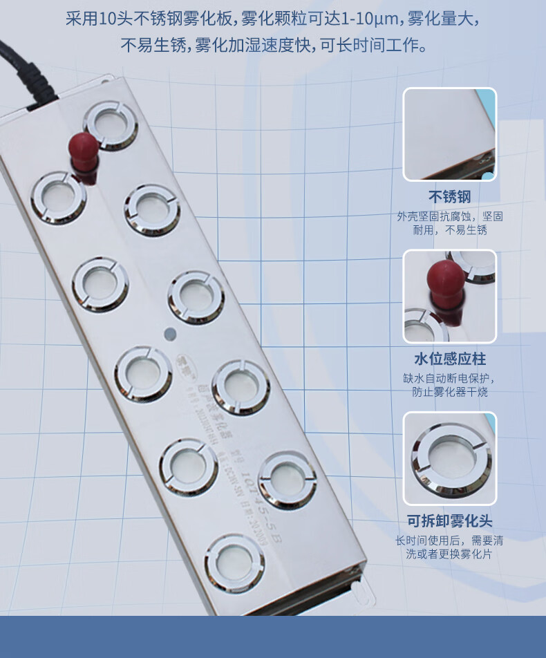 - 自动控制:超声波防爆加湿机通常配备有湿度传感器和自动控制系统,可以根据环境湿度自动调节运行状态,确保湿度的稳定。