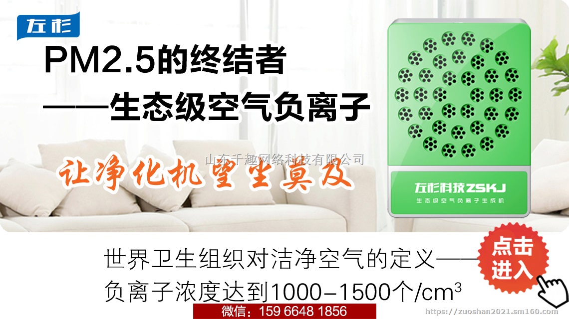 左杉负离子生成机又称:左杉负离子净化器、左杉负离子康健仪、左杉负离子治疗仪。采用全球领先的专利技术,产生小粒径、高活性、自然迁移距离远的生态级负氧离子,且没有臭氧、正离子等衍生物的产生,是负离子产品中的佼佼者。左杉负离子生成机为您创造生态负氧离子森林浴疗养环境,让您回归自然,开启健康品质新生活……网址:www.zuoshanchanye.com微信:15966481856