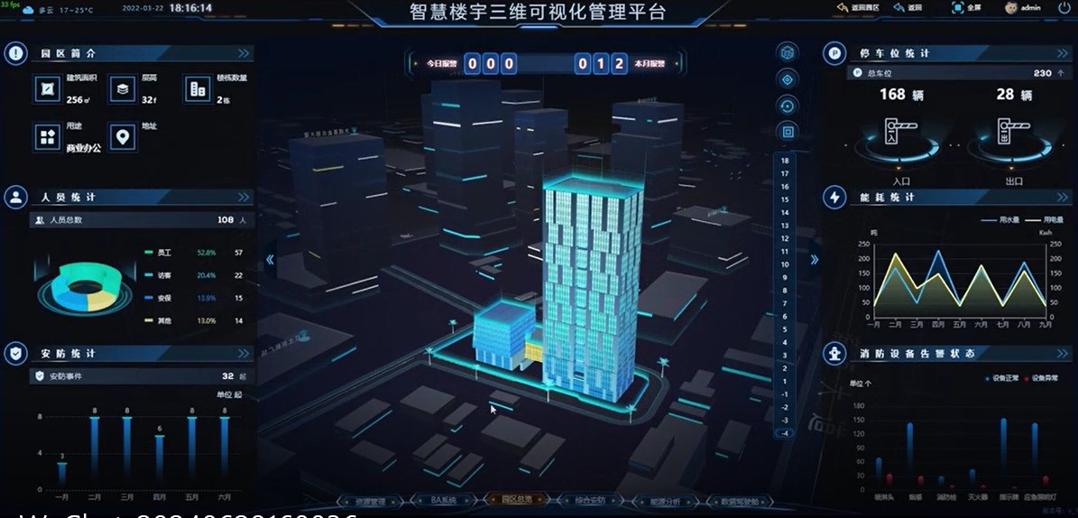 可视化综合运维管理系统,集楼宇自控系统、视频监控系统、入侵报警系统、出入口控制系统、电子巡更系统、停车场系统、消防报警系统等子系统于一体,运用大数据、物联网、BIM可视化等技术,以统一软件界面、实时数据采集、集中监控管理、智能管理控制、自动辅助处置、3D虚拟显示为手段,以集约及优化建筑各类信息数据为目的,实现设备信息综合管理、集中监控、综合报警、联动预案、报表分析、设备资产管理、工单派发、预警提醒等功能,是提高建筑日常运营管理效率、提升服务质量、增强处置突发事件能力、降低能耗的综合管理平台。
