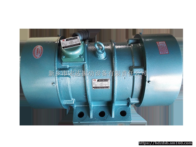 YZDP系列振动电机主体结构及工作原理: YZDP系列振动电机由特制电机外加激振重块组成。当电机通电旋转时,激振块产生激振力,通过电机底脚或法兰盘传递纵横振动机械。特制电机由特制定子线包和转子轴组成,能承受高频振动;卧式振动电机采用四块扇形偏心块作激振块,调节同轴端两块偏心块的夹角,可以从零至大调节振动电机的激振力;立式振动电机,采用两块偏心块作为激振块,两轴端各一块,上轴端为固定偏心块,下轴端为可调偏心块。在上下偏心块的外侧各装有一组附加块,通过调节附加块的数量,可以分级调节振动电机的激振力。振动电机通电旋转,带动电机轴两端的偏心块,产生惯性激振力,该力是空间回转力,其幅值为Fm。 Fm=mrω2 m-偏心块质量 r-偏心块质心回转轴心的距离,即偏心距 ω-电机旋转角度频率 ω=2πn/60 n—振动电机振次 惯性激振力通过振动电机轴承、底脚或法兰,传递给振动机械,就是该振动机械产生的激振力。