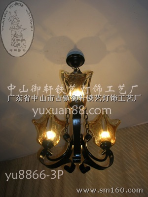 本厂持锤铁匠均有多年以上锻打经验!——我们用心为您打造品味生活。产品创意独特,工艺精湛,特别适合家庭欧式风格装修及西餐厅、酒巴、欧式别墅、园林(园艺)铁艺灯,欧美家具配套,星级酒店、会所、宾馆,户外工程与建筑的装潢。可以根据客户的需要打造不同的款式灯具! 欢迎浏览:http://www.yuxuan88.com/ 电邮:yuxuan88@126.com 电0760-3985807林生。QQ:627042186友好提示本厂灯具规格尺寸和灯罩颜色都可以根据您的具体要求为您定做。